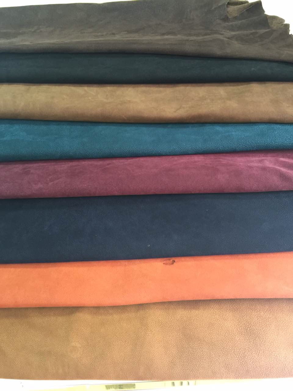 砂烤焦是牛皮縮花而成,有自然收縮的紋路,厚度1.3至1.5,張幅25至30尺,利用率高,是做休閑男鞋的最佳選擇。