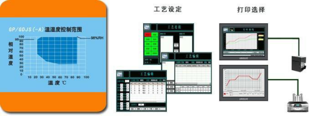 由調(diào)溫(加溫、制 冷)和增濕兩部分組成。通過(guò)安裝在箱體內(nèi)頂部的旋轉(zhuǎn)風(fēng)扇,將空氣排入箱體實(shí)現(xiàn)氣體循環(huán)、平衡箱體內(nèi)的溫、濕度,由箱體內(nèi)置的溫、濕度傳感器采集的數(shù)據(jù),傳 至溫、濕度控制器(微型信息處理器)進(jìn)行編輯處理,下達(dá)調(diào)溫調(diào)濕指令,通過(guò)空氣加熱單元、冷凝管以及水槽內(nèi)加熱蒸發(fā)單元的共同完成。