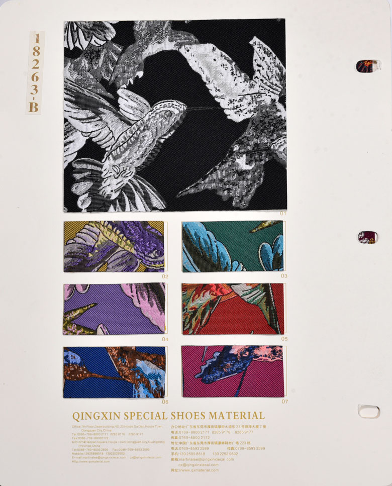 東莞市晴鑫紡織科技有限公司,我們的產品被廣泛的應用了各類工藝如提花、針織、經編等。各類的染色產品如印花、涂層、植絨、壓紋等所有工藝材料的設計開發。專業從事中高檔鞋材開發、生產和銷售,產品應用了各種織造工藝,如提花、色織、針織、經編;各種染理工藝,如印花、燙金、涂層、植絨、繡花、壓膠等特殊加工處理,各種毛絨圖案的風格設計和開發。 我們注重客戶的選擇和要求,重視和客戶的溝通與互動,努力感知市場最新設計趨勢,確定每一季的開發方向,每年分春、秋兩季推出最新產品,每季開發新款布料達100多種。