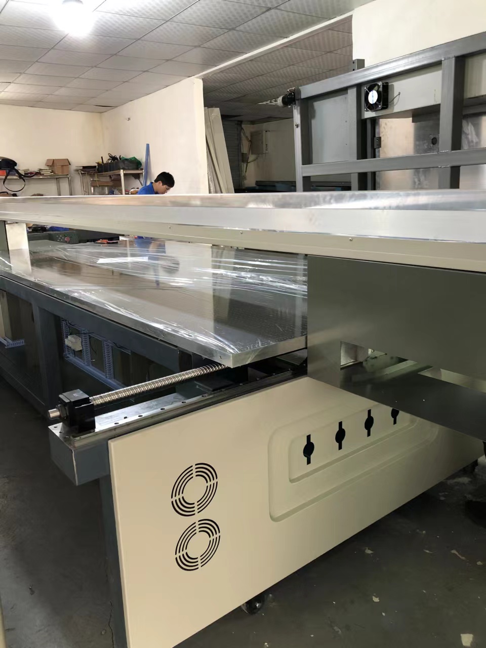 打印寬幅2.5米?1.3米 磁懸浮電機 G6噴頭 大吸附力平臺 可適應 鞋子 玻璃 鋁板材 木板 木紋打印 亞克力 石材 瓷磚 集成板 地毯 皮革 油畫 PVC等