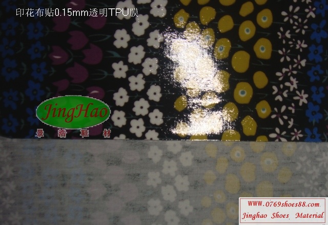 各種網布.印花布.T/C布貼TPU防水透濕膜,其特點為防風防水、透濕的特性能將運動時流汗所產生的水蒸氣迅速排出體外,使穿著時不會感到悶熱并且能適當調節體溫,保持身體干爽,貼上防水透濕膜可適用于防水鞋、氣墊鞋材、運動護墊、服裝、醫療器械、睡袋等。