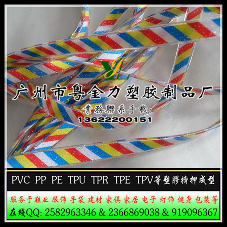 鞋類:PVC沿條、防水線、中插條,透明條、磨砂條、壓花條、寬幅PVC條、實心膠條、空心膠管、涼拖鞋幫面、拖鞋帶等;