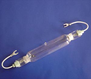 這一類燈是由高壓水銀燈發展而來,由高純度石英管材制造而成,石英管材內充入了含有汞、氬、鎵的碘化物、鐵的碘化物以及一些稀有金屬鹵化物.鎢電極通過鉬帶密封后形成電路,并以金屬燈頭或者帶引線的陶瓷燈頭作為末端.碘化鎵在金鹵燈所產生的光譜中有引入403nm和417nm譜線的功效,這一點顯著的用于二氮化合物的加工.碘化鐵是一種能提供寬光譜紫外輻射的鹵化物,并且能夠增強燈在380nm區域的光譜輸出,添加了碘化鐵的金鹵燈用在光聚合物和日光膠片曝光系統中有非常好的效果。金屬鹵素燈的光譜能量與某些質材的吸收光譜十分吻合,能起十分快速的硬化反應,能廣泛地應用于菲林、絲網、PCB、重氮薄膜及板曝光;此外,金屬鹵素燈還能應用于不同的印刷和表面涂層工業.金屬鹵素燈乃在含有水銀及氬的水銀UV燈的基礎上添加鐵摻合(Iron Iodide)、鉀摻合(Gallium Iodide)或其它稀土金屬原素摻合(Rare Earth Metal Iodide).最常見的金屬鹵素燈是鐵摻合(Iron Iodide)和鉀摻合(Gallium Iodide).鐵摻合鹵素燈特別增強了380nm作為最高波峰,對photopolymer及daylight film的曝光有十分理想的效果;至于鉀摻合鹵素燈,特別增強了403nm及417nm的波峰,其最高的417nm波峰對于Diazo 材料的曝光有十分顯著及良好的作用