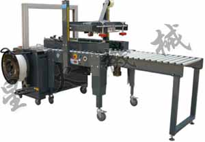 本系統由自動封箱機,全自動捆扎機和輸送架組成,具有連續自動封箱及多道捆扎包裝的功能,既減少占地面積,又