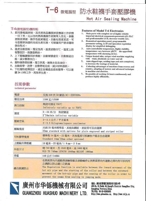 T-6(電腦型)機(jī)特點(diǎn): 采用微電腦控制、觸摸式數(shù)字顯示屏操作。可根據(jù)用戶需求隨時(shí)修改程序。 溫度自動(dòng)控制,穩(wěn)定性高,溫度波動(dòng)±2℃,溫度上限報(bào)警設(shè)計(jì),保護(hù)發(fā)熱絲。 上下壓輪鏈條同步傳動(dòng)、自動(dòng)補(bǔ)償虛位、自動(dòng)微退功能、減少壓帶空白。 根據(jù)人體力學(xué)設(shè)計(jì)雙腳踏控制程序,操作舒適,不易疲勞,適宜長(zhǎng)時(shí)間操作。 可以連續(xù)24小時(shí)工作,高效率生產(chǎn)。 獨(dú)特發(fā)熱管結(jié)構(gòu),進(jìn)風(fēng)經(jīng)過(guò)濾,絕無(wú)水份及油份。 自動(dòng)微退功能,提高產(chǎn)品質(zhì)量。 自動(dòng)剪帶、送帶,自動(dòng)帶尾完成,減少材料損耗。 下柱獨(dú)特超薄設(shè)計(jì),適宜各種大中小件產(chǎn)品密封壓帶。